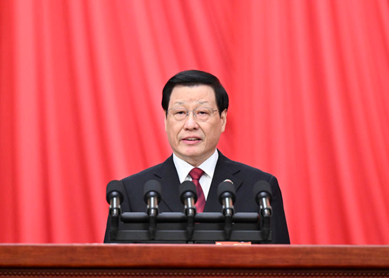 3月8日,十四屆全國人大三次會議在北京人民大會堂舉行第二次全體會議。受全國人大常委會委托,趙樂際委員長向大會報告全國人大常委會工作。新華社記者 丁海濤 攝