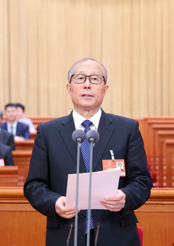 3月8日,十四屆全國人大三次會議在北京人民大會堂舉行第二次全體會議。最高人民法院院長張軍作最高人民法院工作報告。新華社記者 申宏 攝